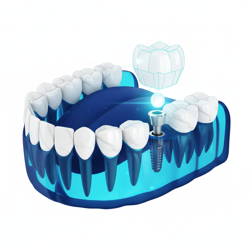 O implante dentário unitário é a solução mais moderna e eficaz para substituir um dente perdido. Utilizamos implantes de titânio de alta qualidade que se integram ao osso, proporcionando uma base sólida para a prótese. O resultado é um dente artificial que funciona e parece completamente natural, devolvendo sua confiança e qualidade de vida.